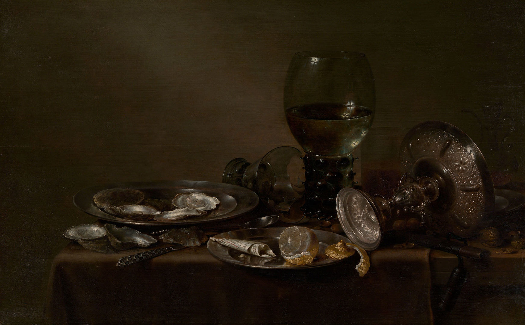 In truth, this essay is an answer to The Met’s questions regarding the other elements ‘ripe for interpretation’ in Still Life with Oysters, a Silver Tazza, and Glassware, posed to the viewer: Who was enjoying these oysters? Why did they leave so suddenly? To board a train, while evading fans and paparazzi perhaps. Who knows?