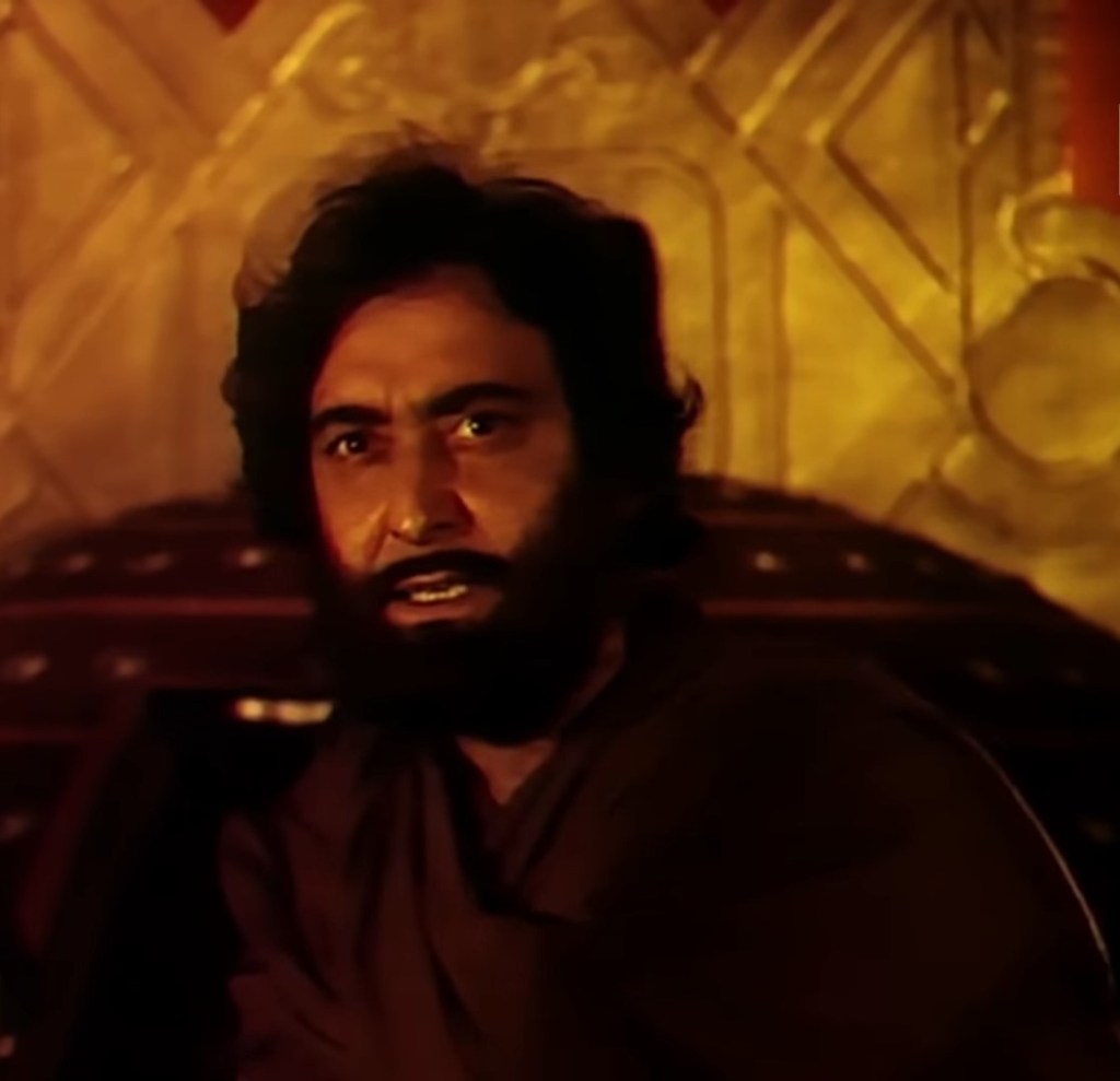 We find two such defiant figures in Udayan Pandit and Hunshilal whose ultimate showdown with authority, while having different consequences, seem part of the same parable. Udayan Pandit, the village schoolmaster in Hirak Rajar Deshe, is an obvious exception because unlike the other characters, his dialogues in the film are not rhymed. In keeping with the format of a quintessential political satire, he is therefore shown as a free thinker who pulls out all the stops to rid his land of the evil king. Aided by the wandering musicians Goopy and Bagha and his students, Udayan hatches a plot to give Hirak Raja a taste of his own experiment. In an unforgettable climax Hirak Raja, along with his ministers, after being forced into the brainwashing chamber, join the rest of the villagers to pull down his own statue.