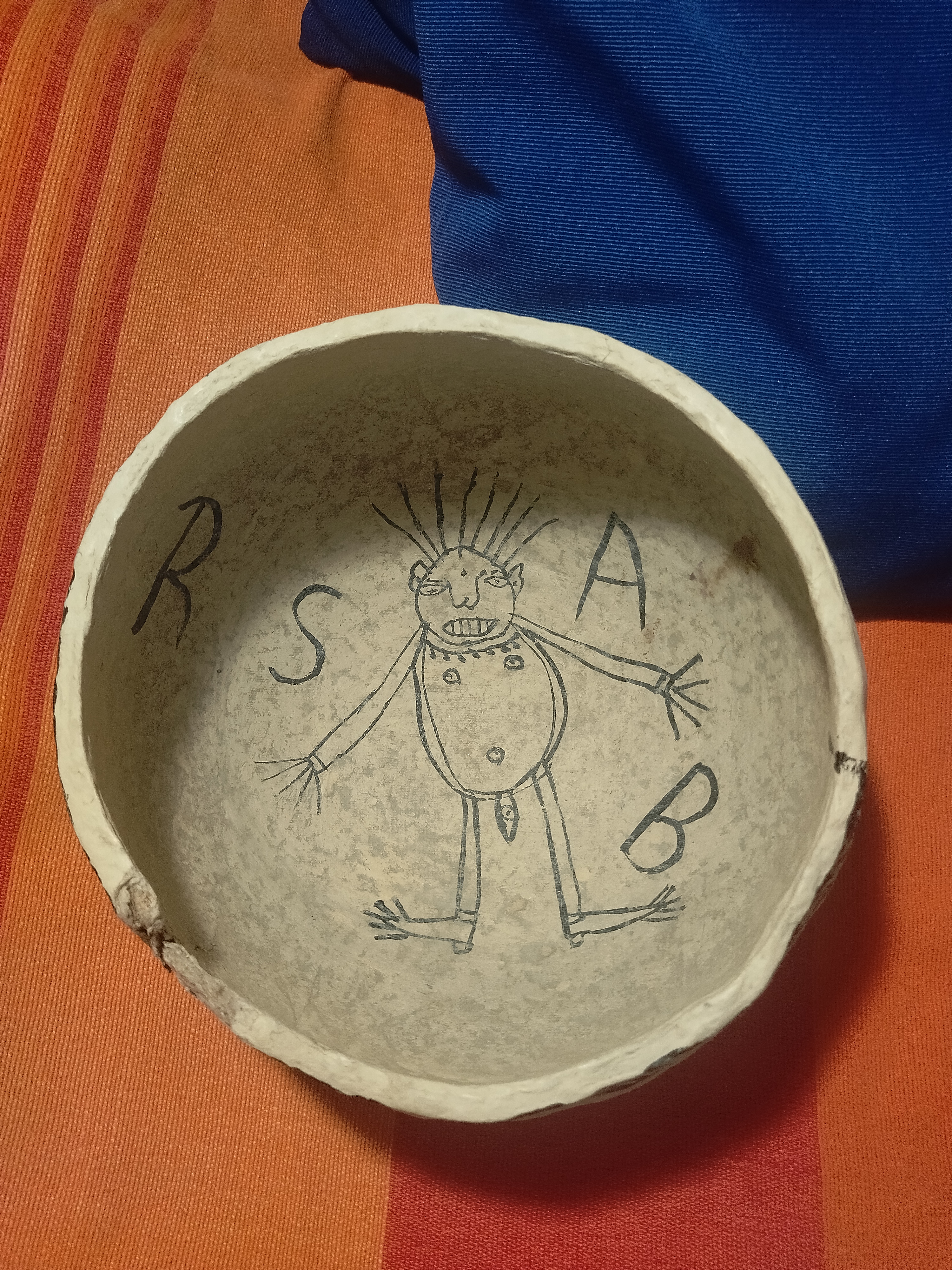 A witch with a dick. It is more funny than hideous, with ‘RSAB’ written around it and a sweet note on the flip side.